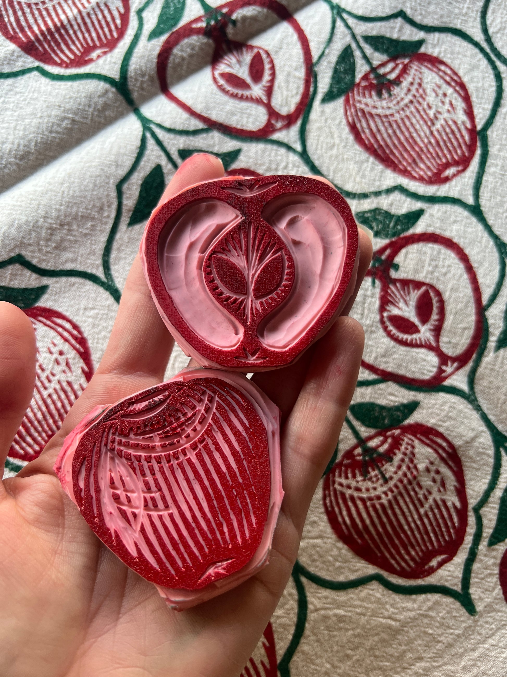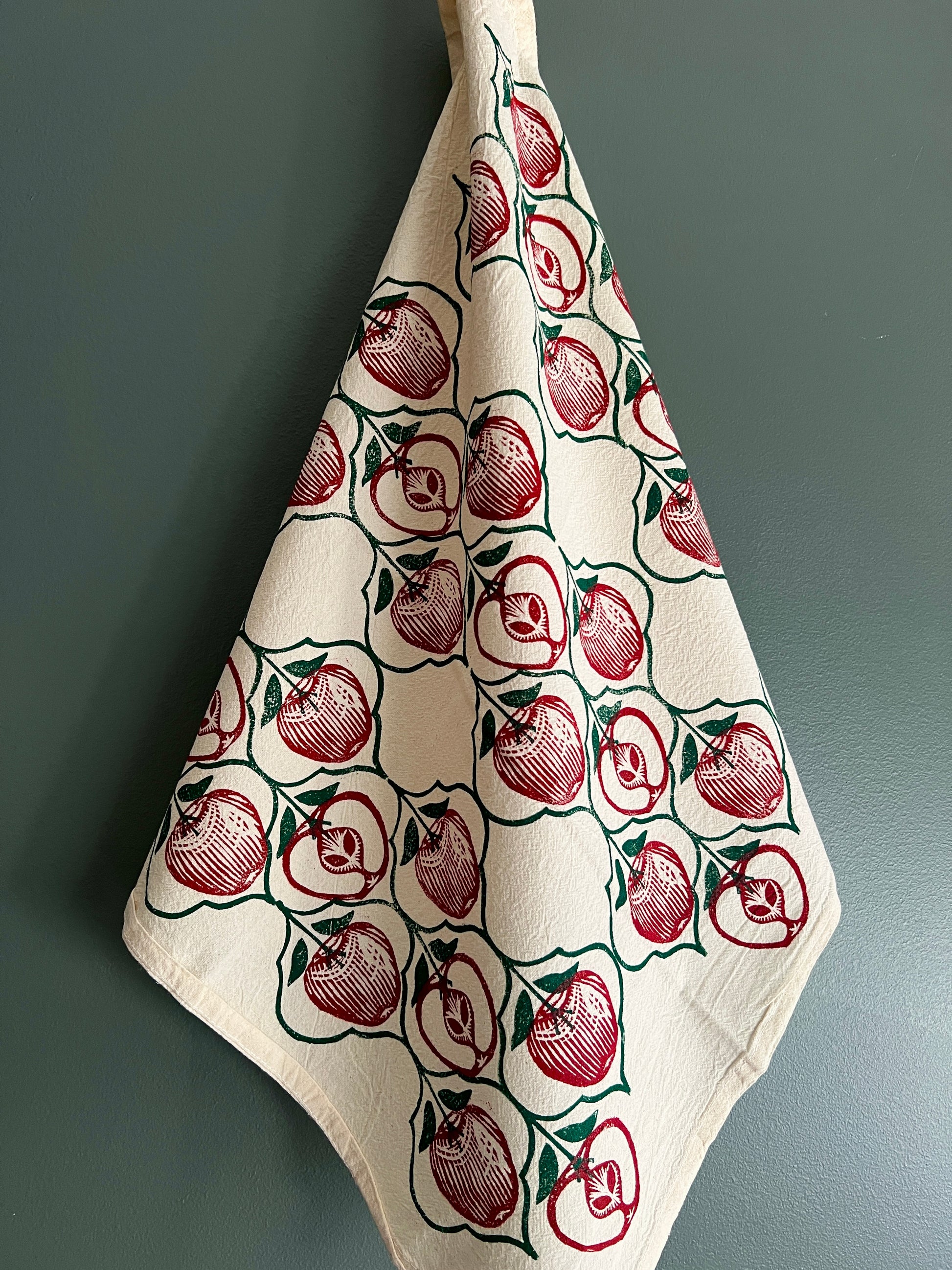 Apples and apple slices printed on natural cotton 20” tea towels.