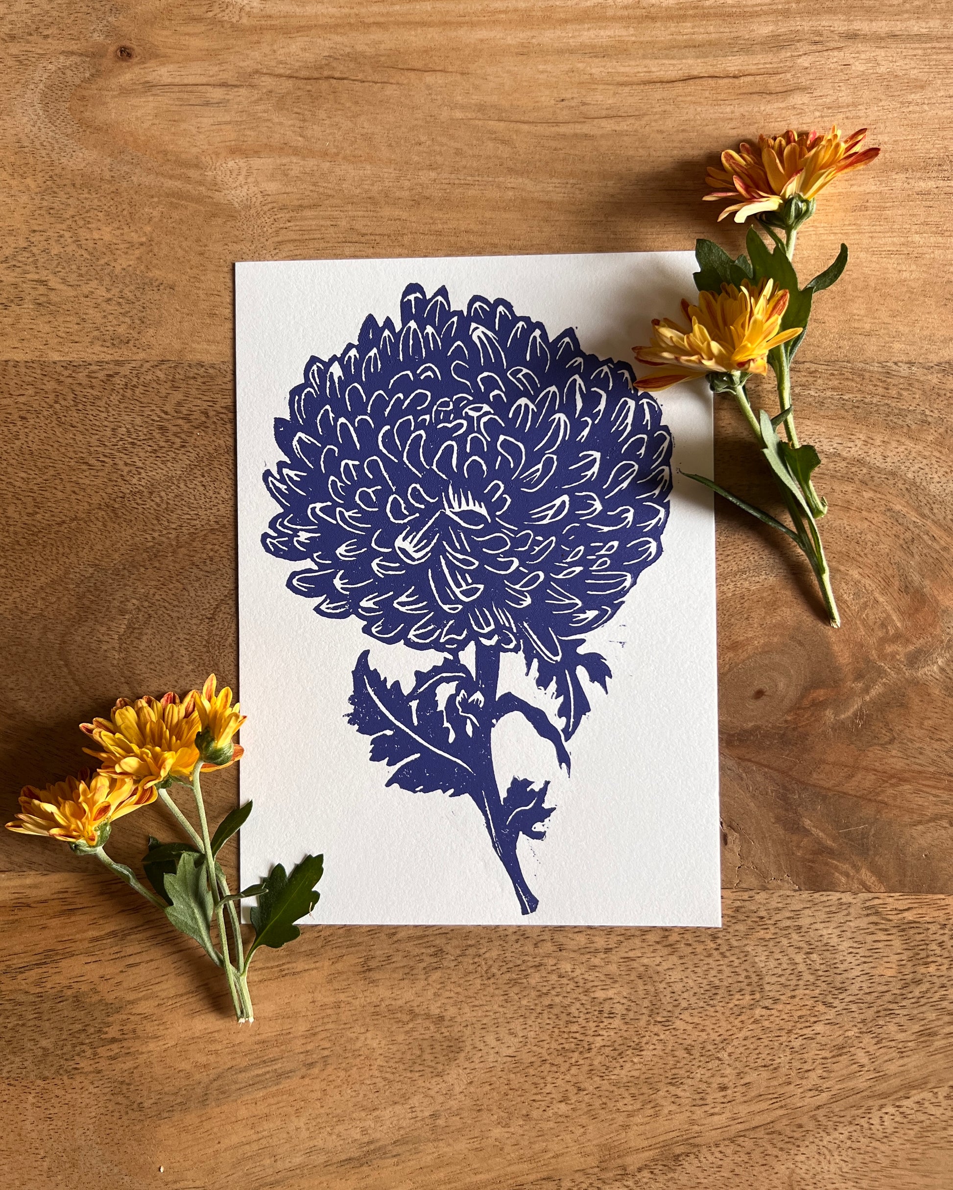 Chrysanthemum - November Birth Flower - Linocut Print