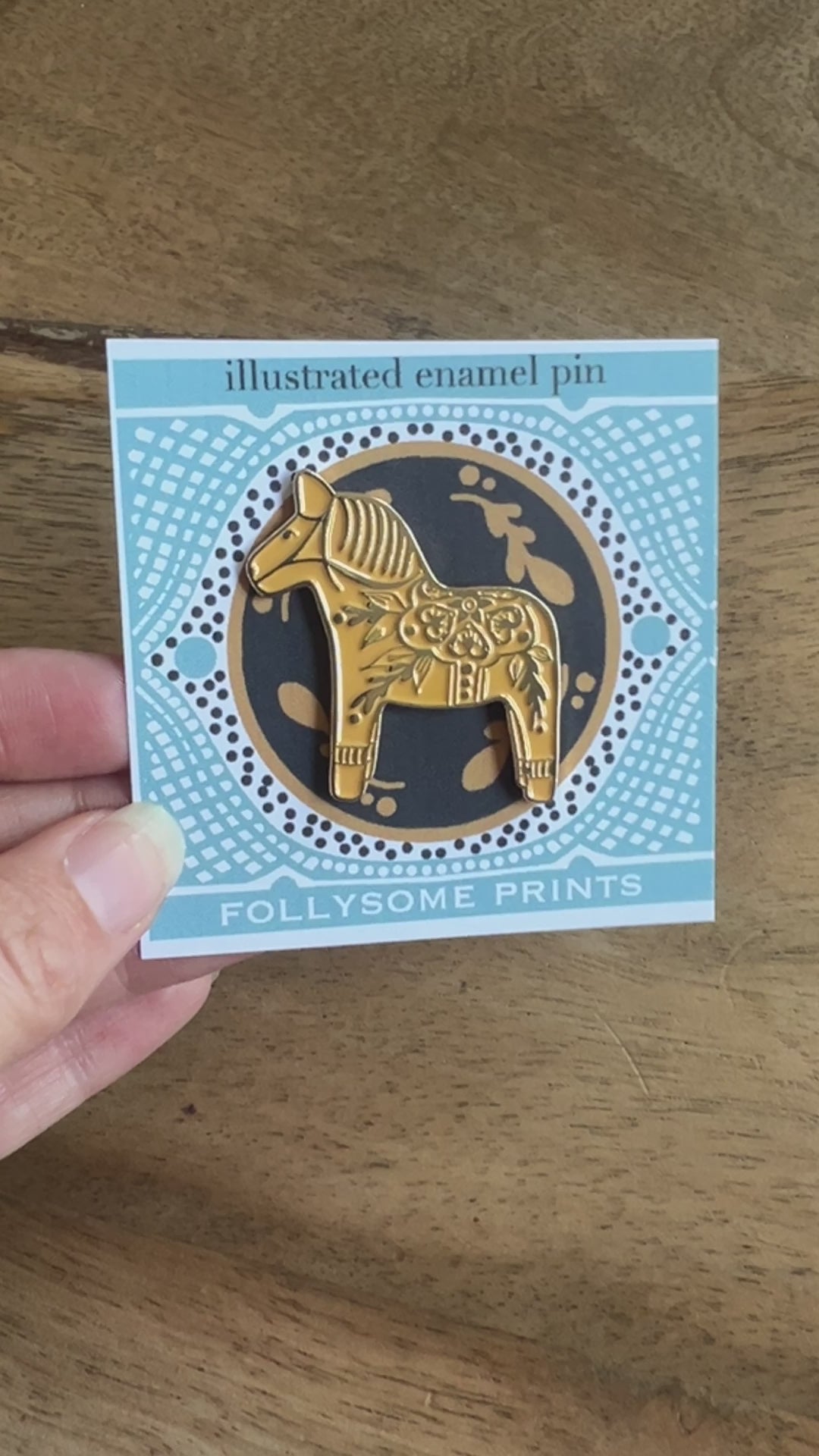 Original illustration forged into a glimmering lapel pin. Celebrating folk art traditions and family heritage, featured on a carefully designed pinback card.