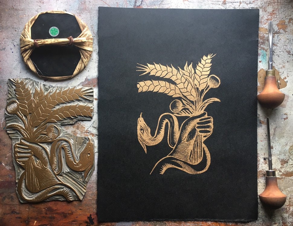 Demeter's Holy Grain Linocut