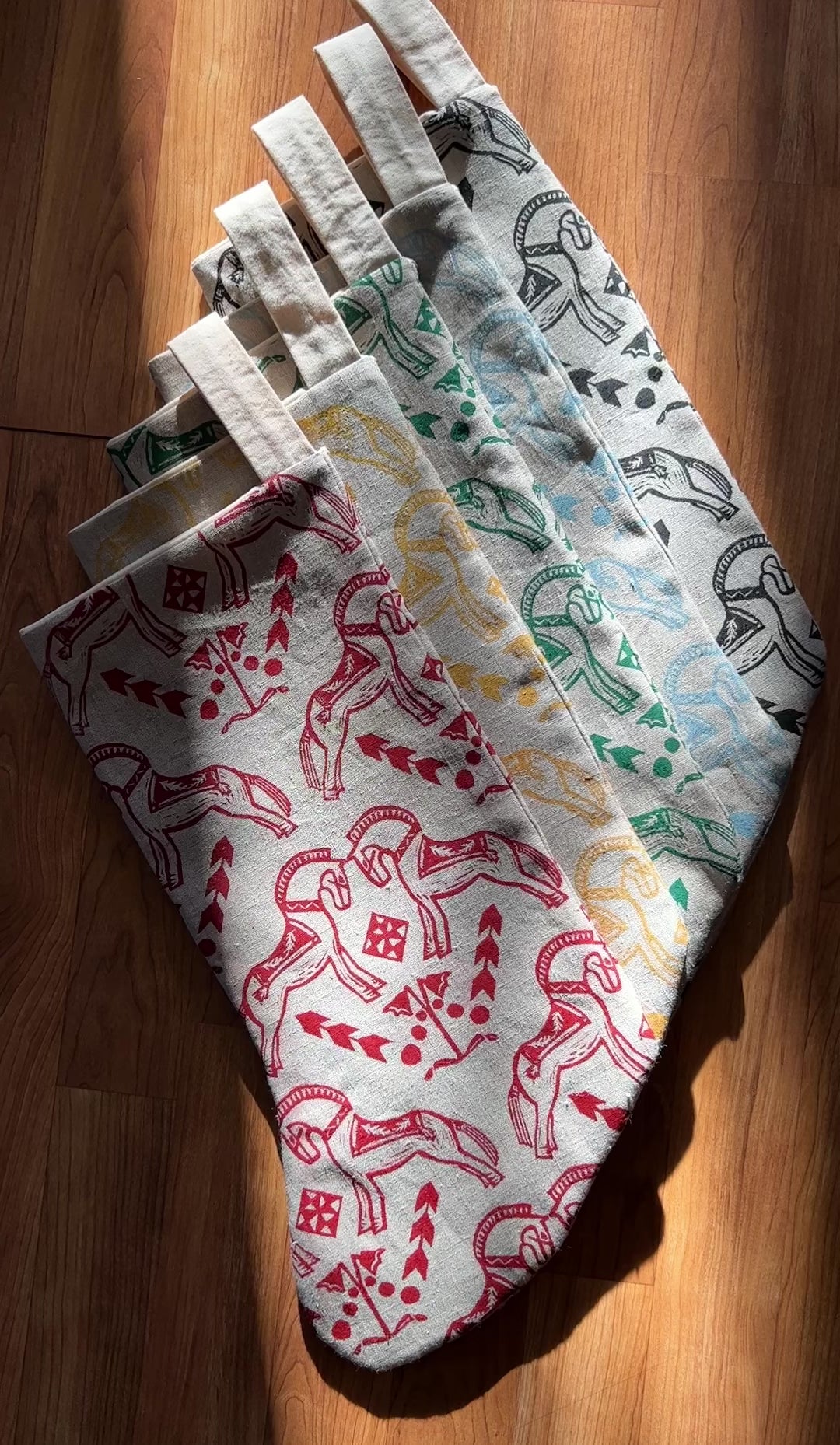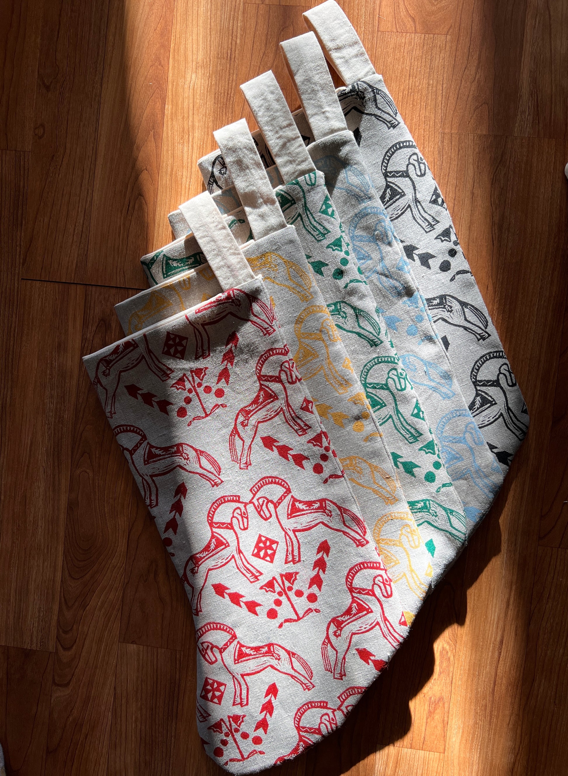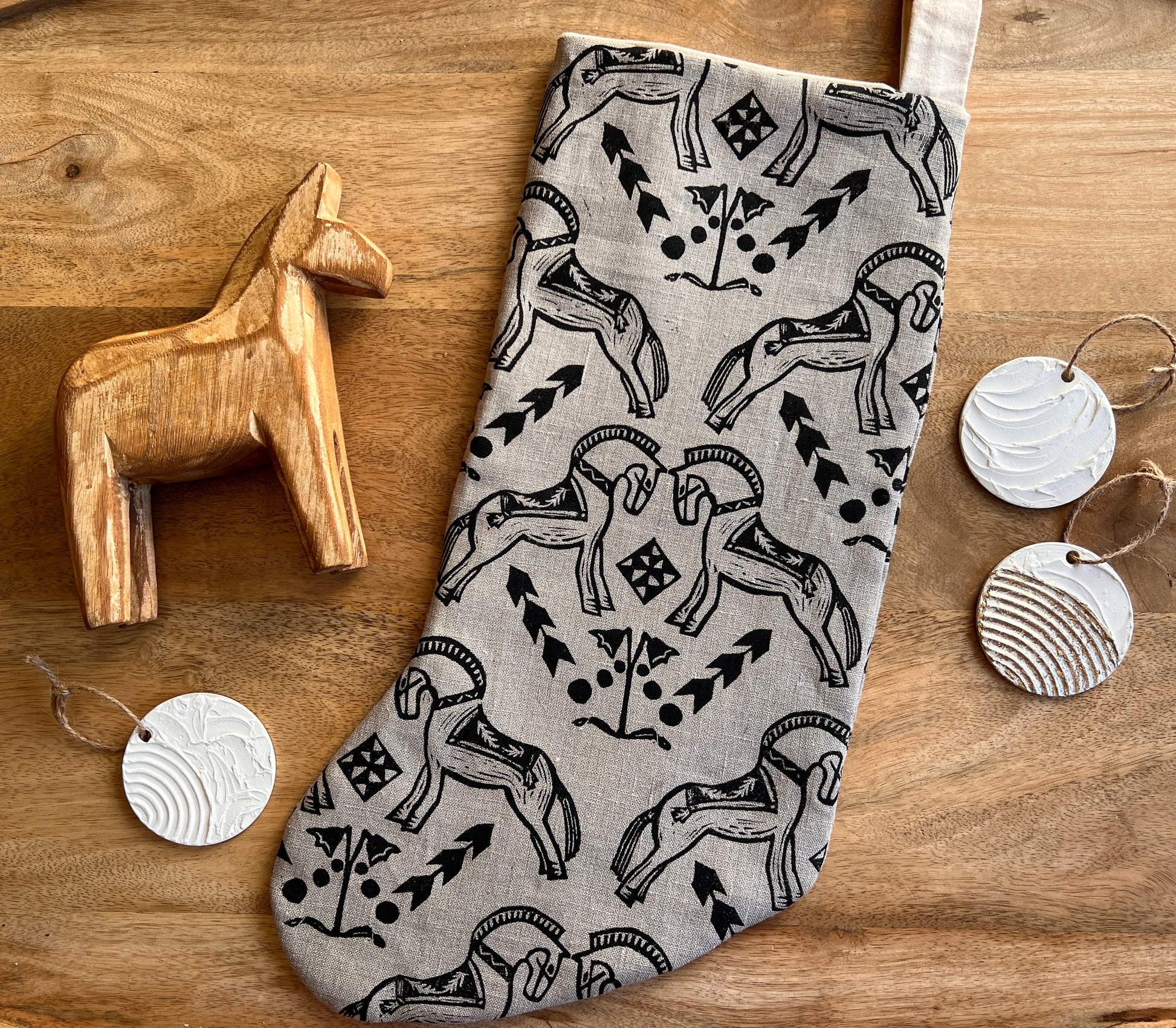 Fjord Horse Block Printed Christmas Stocking - Ready to Ship