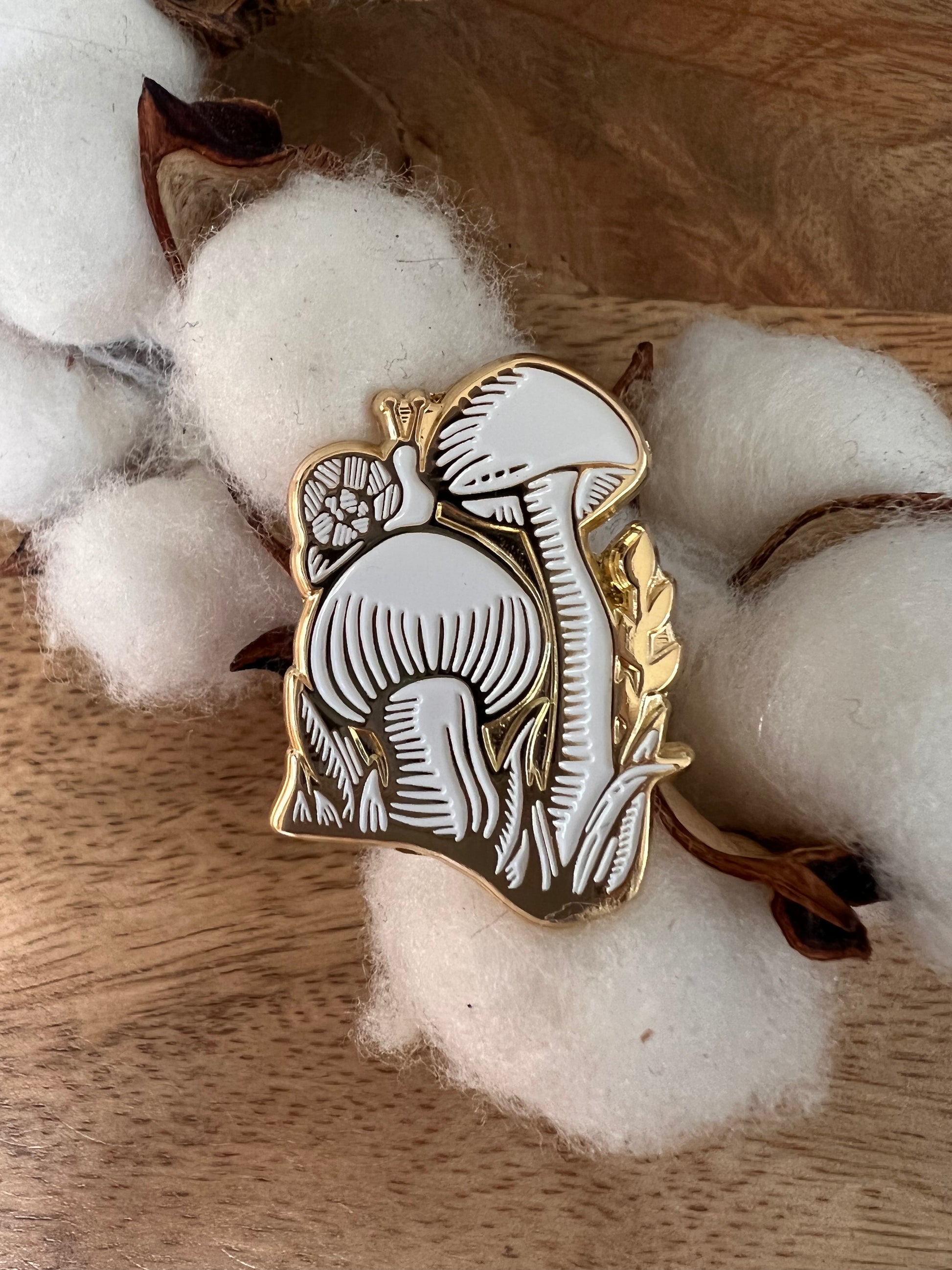 Mushrooms, flora and snail, Limited Edition Gold Enamel Lapel Pin