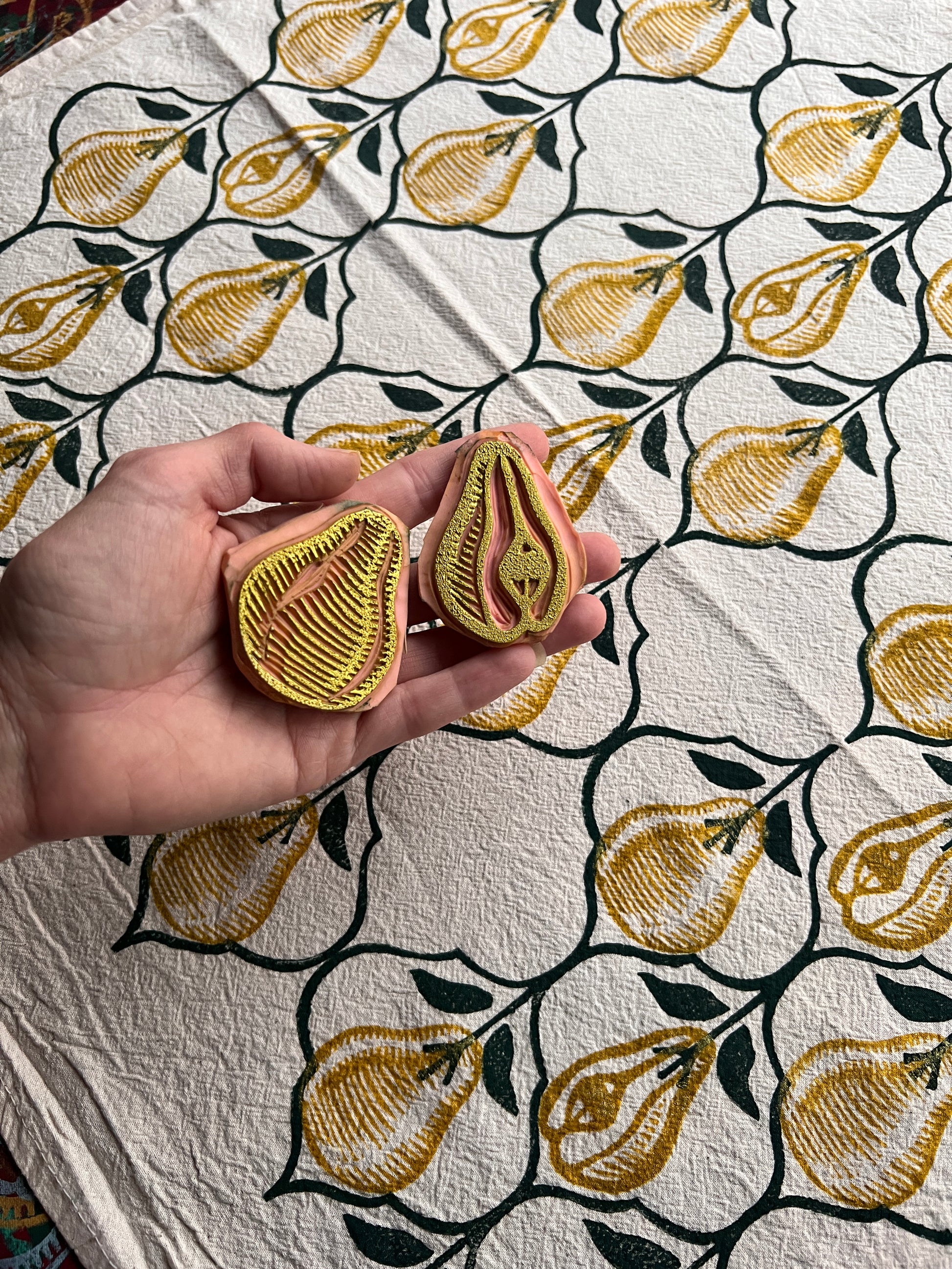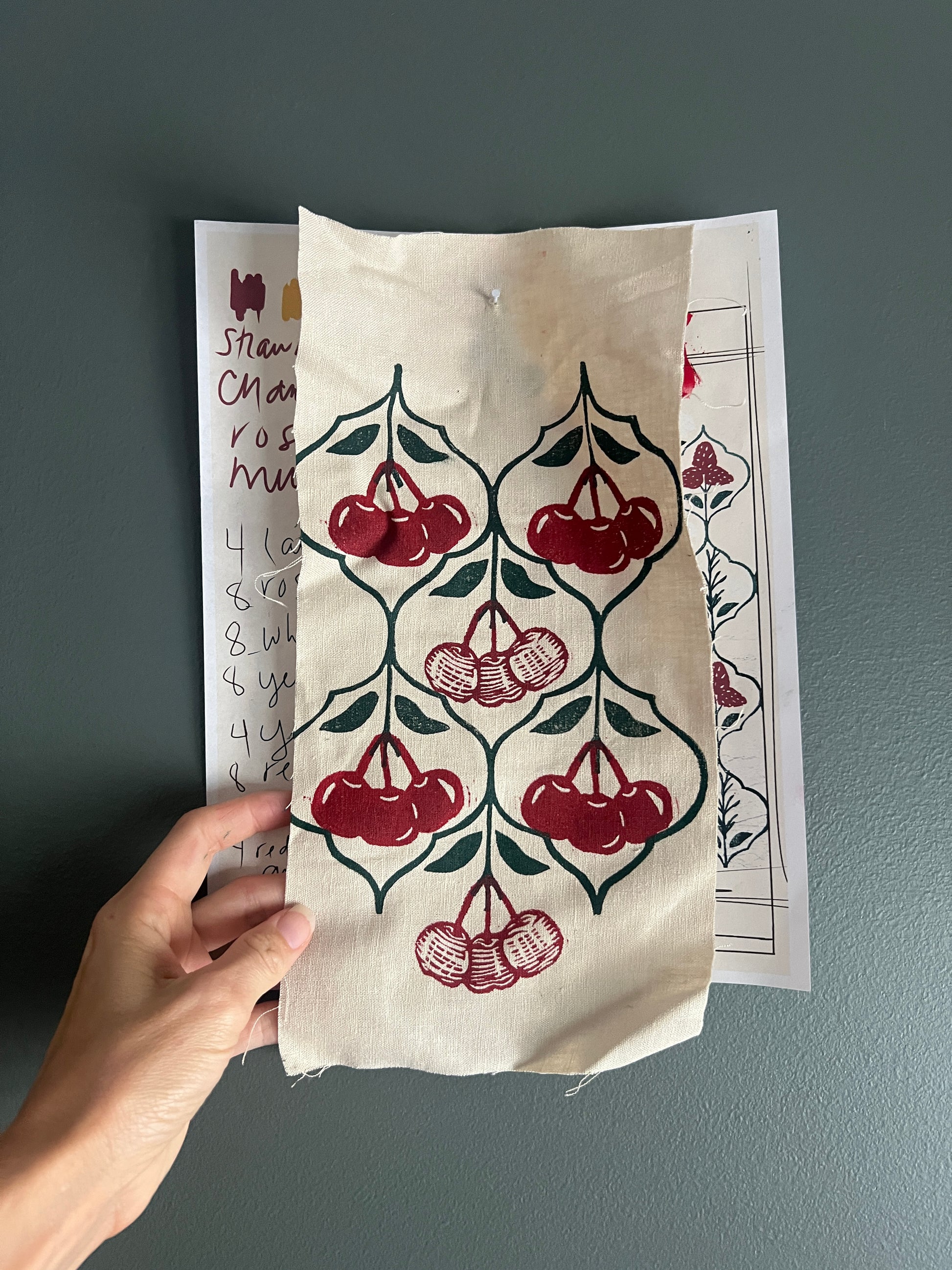Each botanical illustration was drawn and transferred to a printer’s block, hand carved, and each tile is individually hand printed edge to edge to create a unique piece of art for your home.