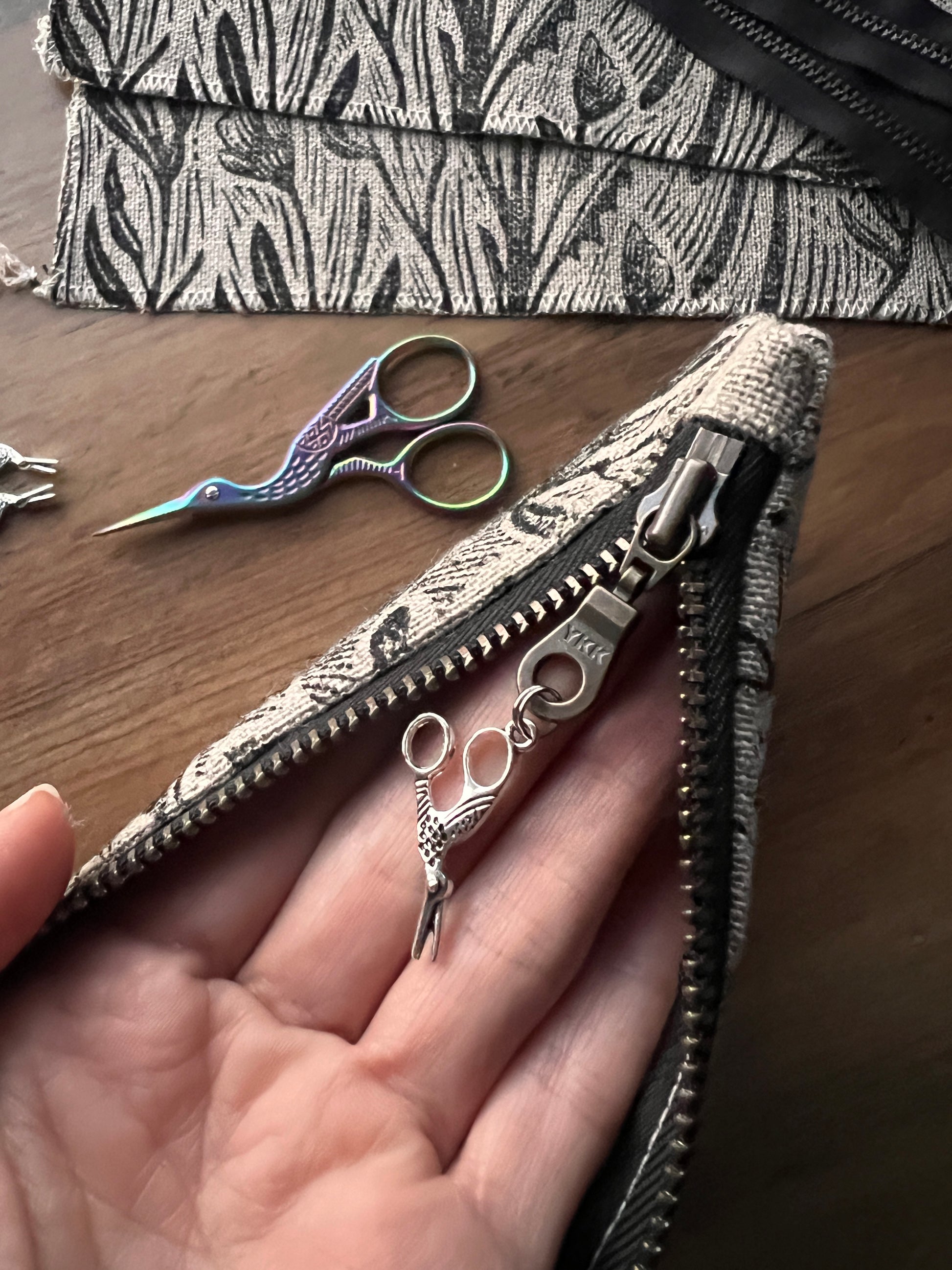 The sweetest antique metal charm of embroidery scissors are the finishing touch, because it’s all in the little things and I love to bring embroidery projects around with me.