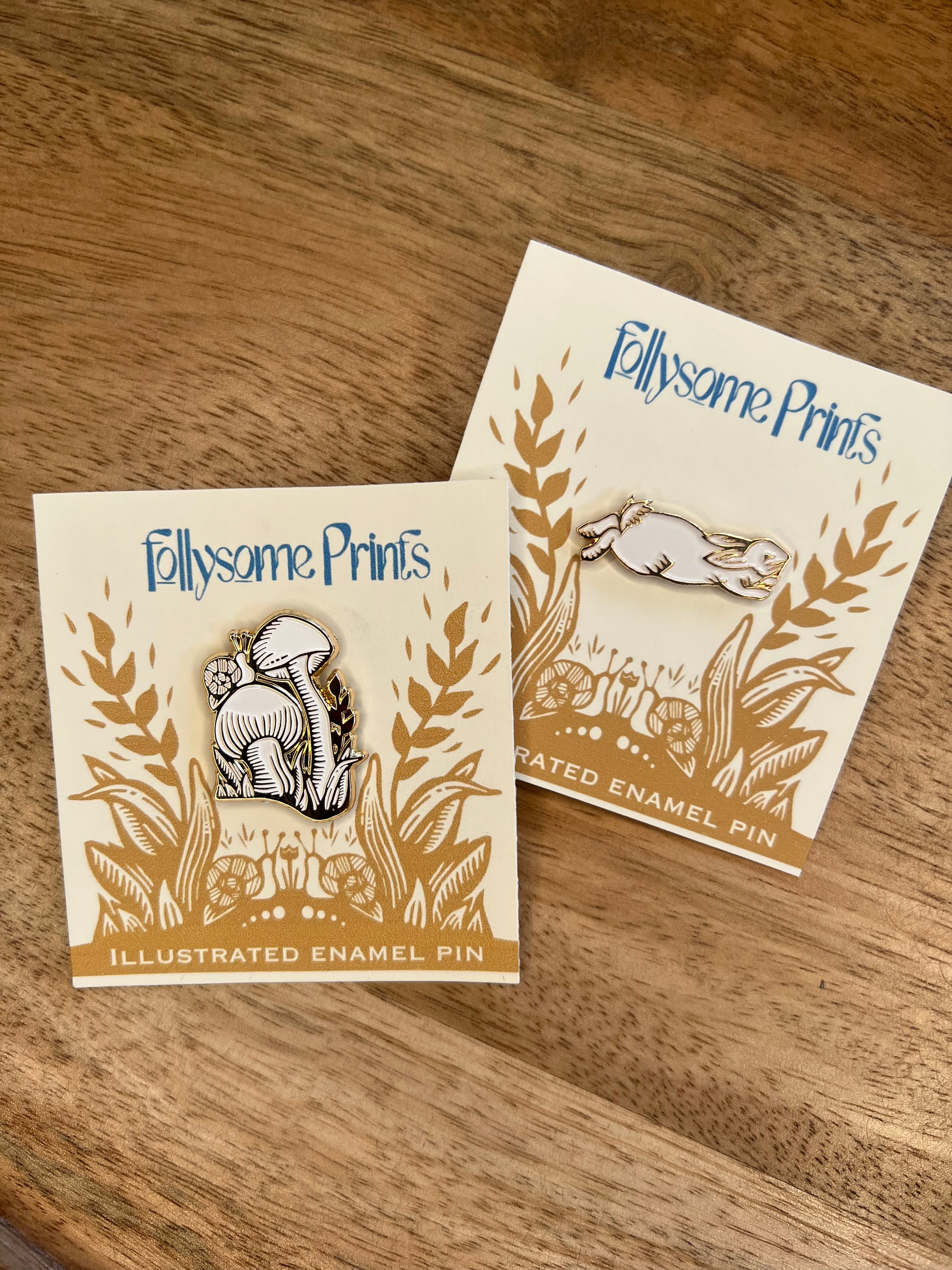 Original illustration forged into a glimmering lapel pin. Celebrating the year of the rabbit, featured on a carefully designed pinback card.