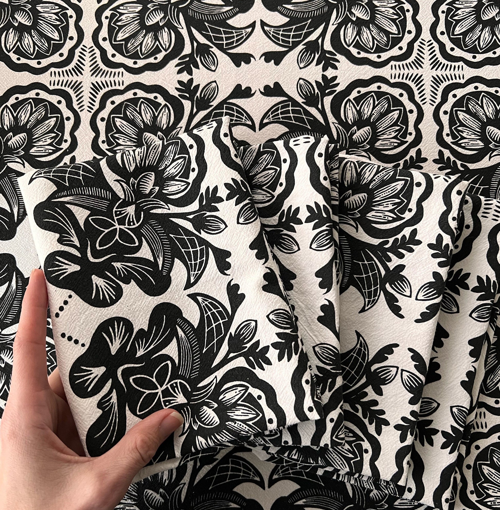Oversized cotton tea towels are hand printed in the Midwest with an original pattern design inspired by my Norwegian heritage. Crisp and bold, silkscreen printed. Premium cotton textiles measure 27 inches with a twill hanging loop.