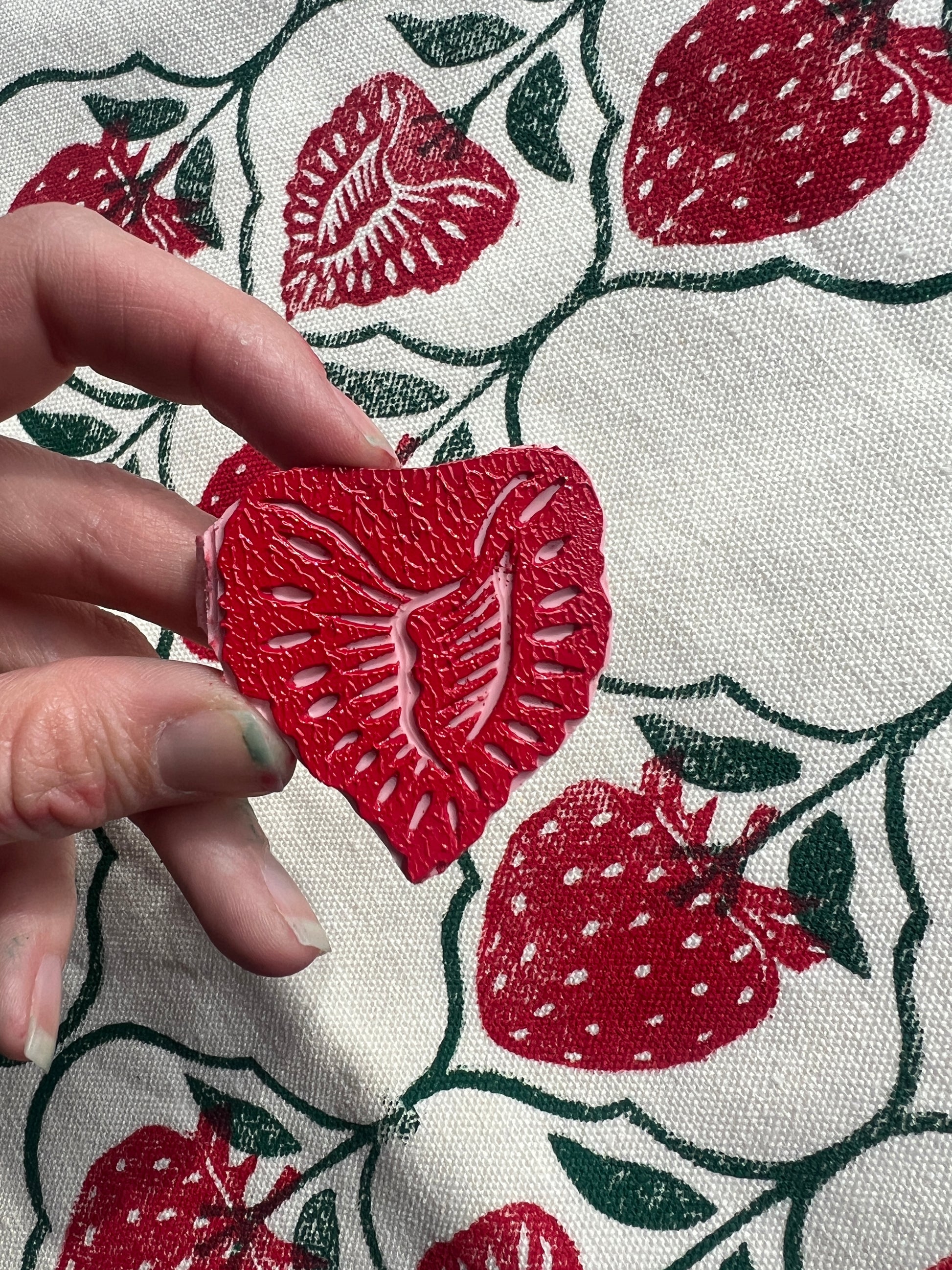 This original pattern design began with an illustration drawn directly onto 3 linoleum blocks and hand carved. Block printed by hand in the Midwest. Textile art for everyday life.